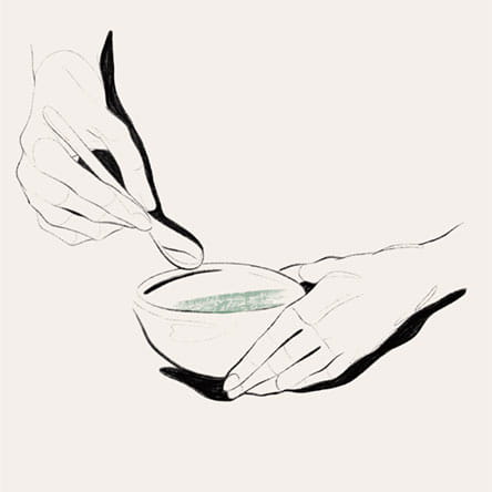 クレイ1回分(大さじ1杯程度)を器に出し、お水やハーブウォーター(小さじ2杯程度)を回し入れます。
