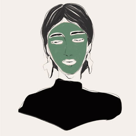 メイクを落とし軽くタオルドライしたお肌全体に、まんべんなく5ミリ〜1センチ厚で塗布していきます。